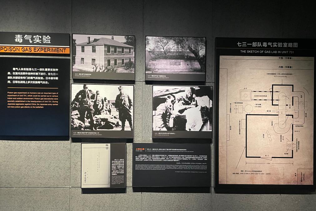 侵华日军第七三一部队罪证陈列馆内展出的毒气实验介绍。新华社发